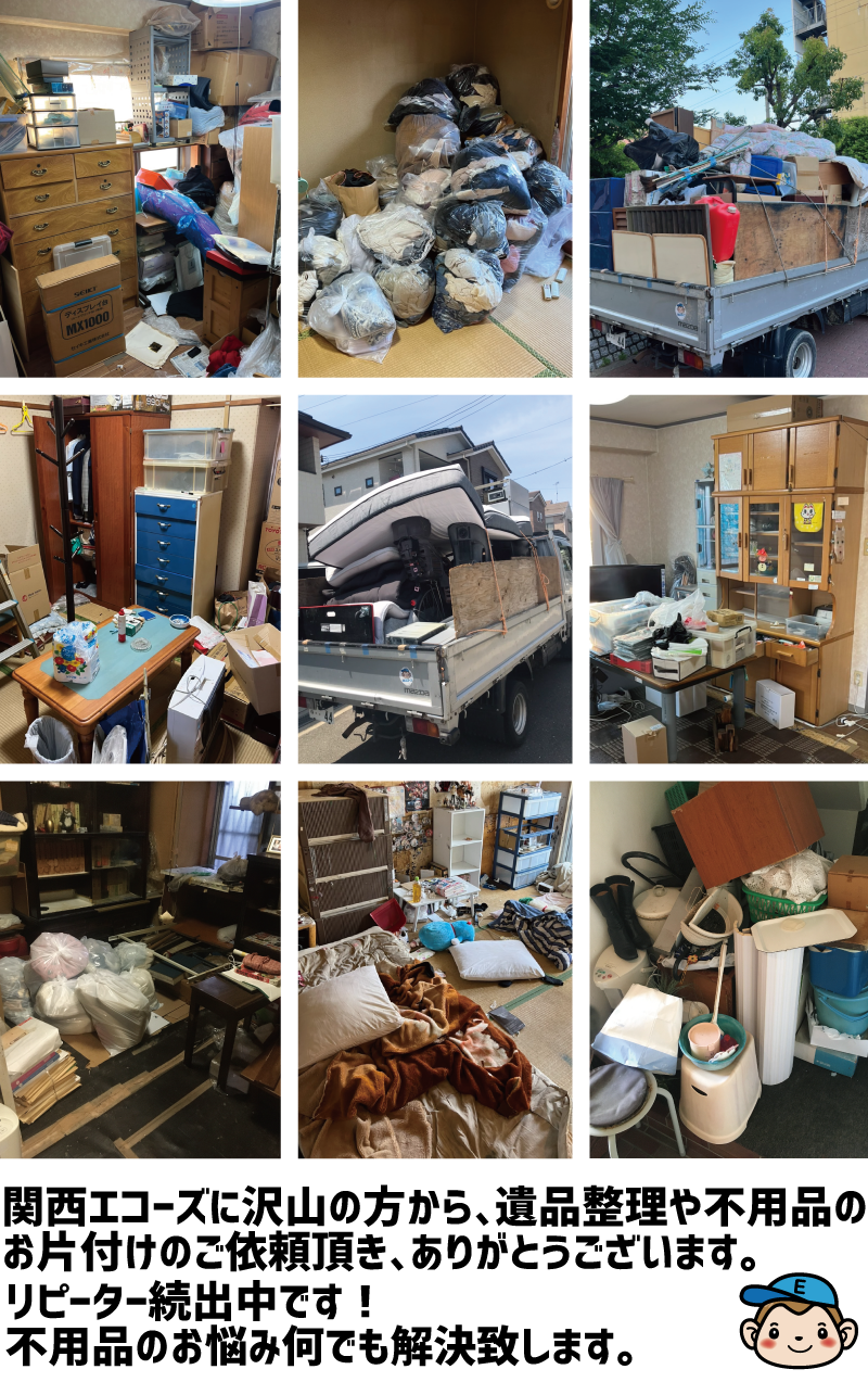 関西エコーズではお客様の予算や不用品回収のご予定に合わせ、最短、最安値のプランをご用意いたします。お引越しなどで処分に困っている大型の家具や大量のゴミ、リサイクル家電などの不用品をまとめて処分いたします。もちろん分別も一切必要なし、とにかく捨てれるお得な積み放題プランです。業者さま向けの事務所移転や店舗閉鎖による大量一括処分、在庫整理、また急な遺品整理などにもスピーディーに対応いたします。まずはお気軽にご相談ください。
